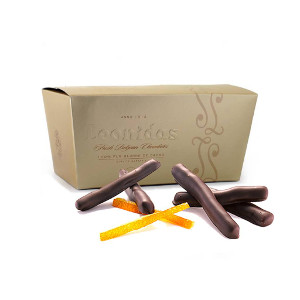 Candied orange peel coated in dark chocolate. The Orangettes Leonidas soft and melting ... 100% pure cocoa butter, 100% flavor, 100% quality ...