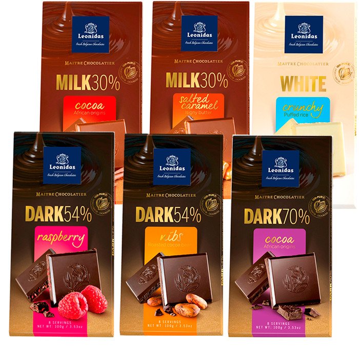 New range 50gr and 100gr Tablets Belgian Chocolates Leonidas. Also, two flavors of Spread Chocolate. The Know-how of the Masters Chocolate Confectioners Leonidas.